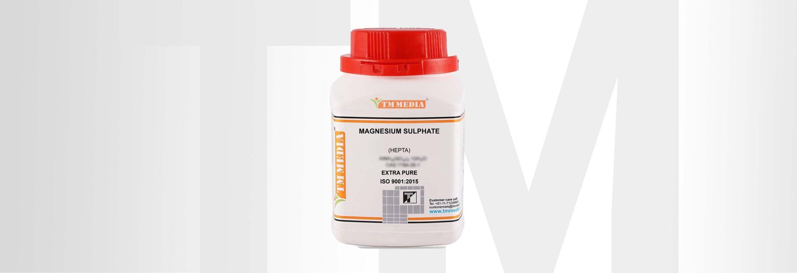 Magnesium Sulphate Hepta is a hydrated form of Magnesium Sulphate with the chemical formula MgSO4.7H2O. Its common name is Epsom Salt. A white crystalline powder, it is highly soluble in water and can be used for various purposes. It can be used in the manufacturing of fine chemicals, bath soaks, foot soaks, and skin care and in healthcare as a muscle relaxant, pain killer, and skin softener. It can also be used as fertilizer in agriculture as a source of magnesium and sulphur. There it promotes chlorophyll synthesis and overall plant health. Moreover, it is used as a laboratory reagent. At TM Media, it is available in various grades, such as food, molecular biology, lab chemical, pharmaceutical, and agri.