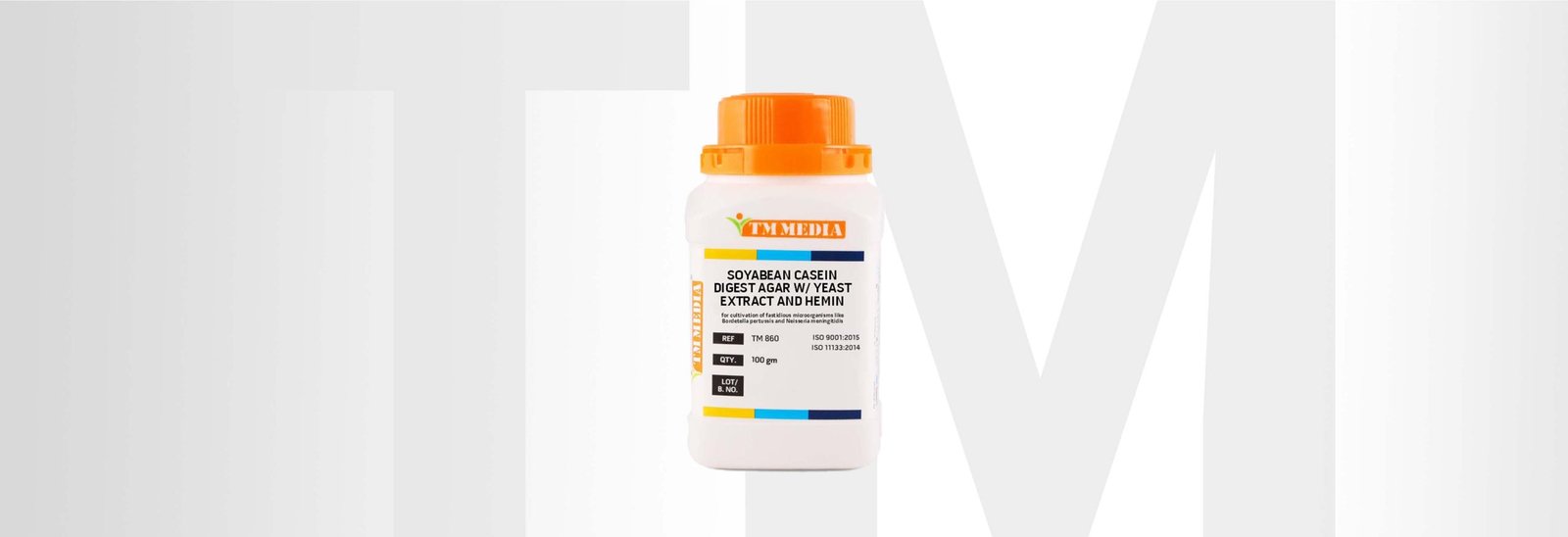 Soyabean Casein Digest Agar is recommended by various pharmacopoeias as sterility testing medium. Trytone Soya Agar w/ Yeast Extract and Hemin is a modification of Soyabean Casein Agar with the additional ingredients tomato juice, yeast extract and hemin.