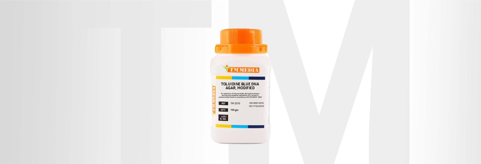Toluidine Blue DNA Agar, Modified is recommended for detection of thermostable deoxyribonuclease activity and establish speciation of S. aureus in contaminated foods in accordance with FDA BAM, 1998. Staphylococcus is Gram-positive bacteria which includes several species that can cause a wide variety of infections in humans and other animals through infection or the production of toxins. Staphylococcal intoxication worldwide stands out as one of the main food-borne diseases, with a frequency in incidents of microbiological origin second only to salmonellosis. Foods that lack hygienic conditions and that are improperly stored can aid in the Staphylococcal growth and toxin production. Since the infection is caused due to toxin, Staphylococcal food poisoning is also called as ?food intoxication?. Toluidine Blue DNA Agar, Modified is recommended for detection of thermostable deoxyribonuclease activity and establish speciation of S. aureus in contaminated foods in accordance with FDA BAM, 1998 with a slight modification in concentration of calcium chloride and toluidine blue. DNA in the medium enables the detection of DNase activity by getting depolymerized and forming a clear zone around the microbial growth. Inclusion of toluidine blue aids in detection of DNase activity by the production of a visible bright rose-pink coloured reaction due to its metachromatic properties.